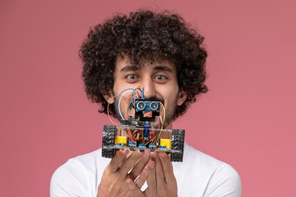 Ein fester Tüfteltermin pro Woche wirkt Wunder. Fünfzehn fokussierte Minuten sind wertvoller als zufällige Hektik. Dokumentiert Fortschritte im Heft, damit Lernwege sichtbar und motivierend bleiben.